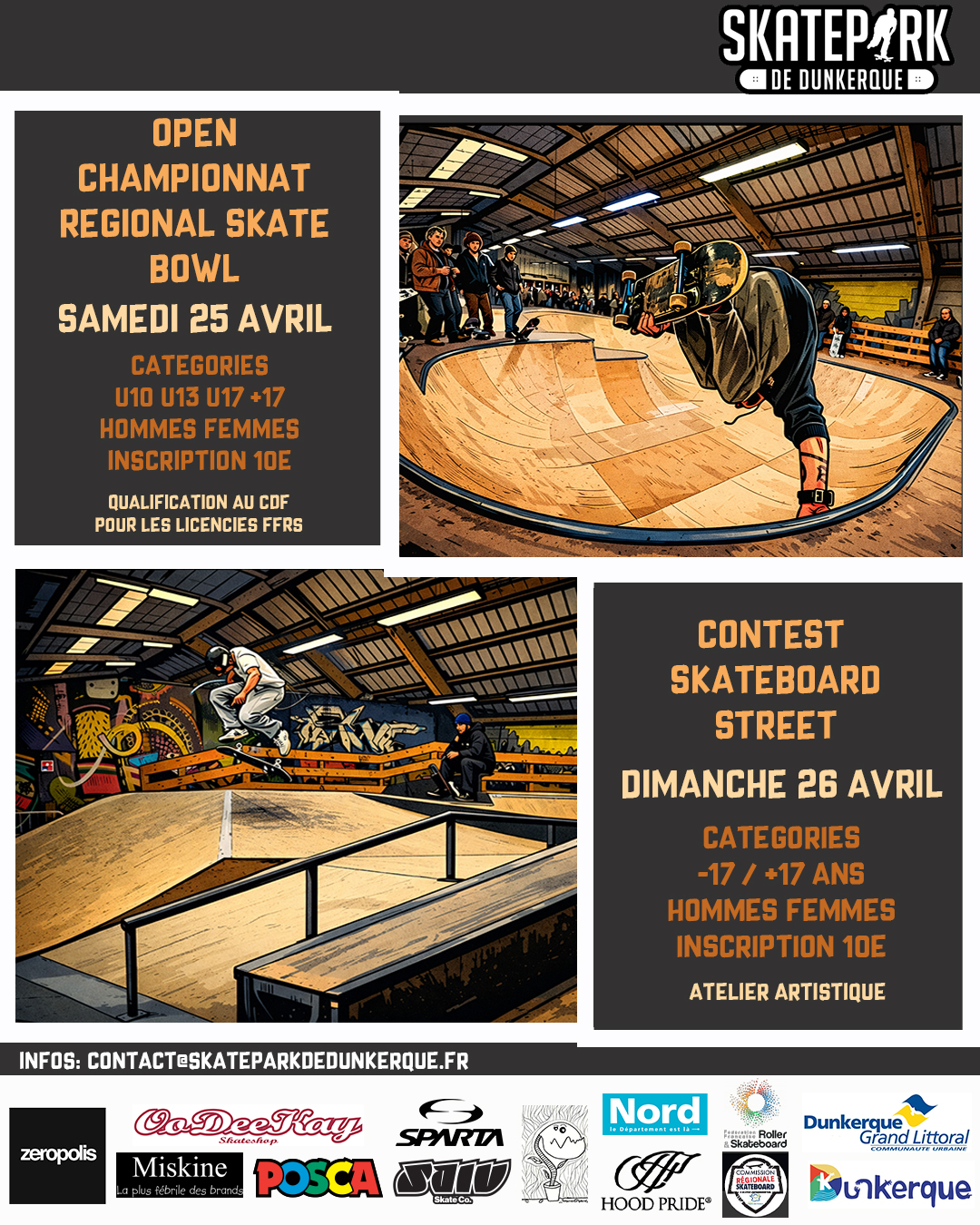 Championnat régional HDF Skateboard Street et Bowl Dunkerque 25 et 26 avril 2026